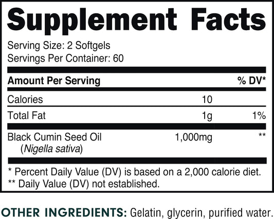 1000mg Organic Black Seed Oil Softgels - 60 Servings of Black Cumin Seed Oil Supplements