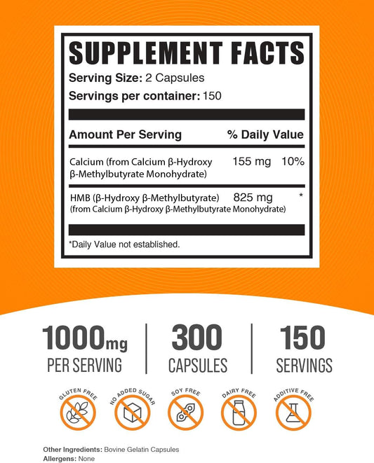 1000mg HMB Capsules - Calcium HMB Supplement, Beta-Hydroxy Beta-Methylbutyrate - Gluten Free, 300 Capsules