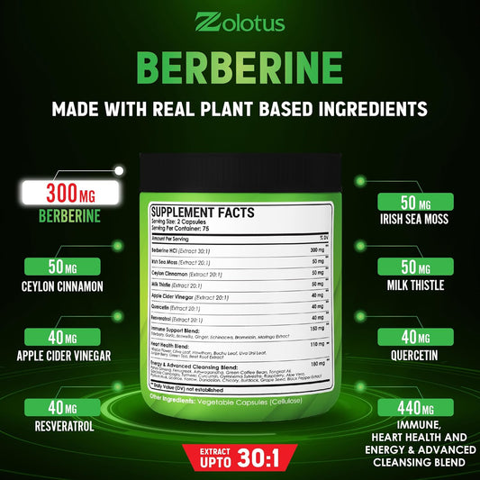 40-in-1 Berberine Supplement with Sea Moss, Cinnamon, Milk Thistle, Apple Cider Vinegar, Quercetin for Digestion, Immune System, Heart Health