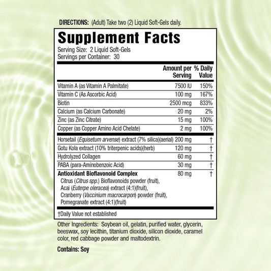 4-Pack Applied Nutrition Longer Stronger Hair & Nails Liquid Soft-Gels with Biotin, Silica & Collagen - 30 Servings Each