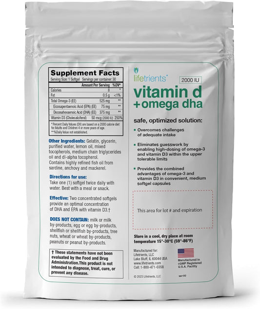 4-Pack Lifetrients Premium Omega-3 Fish Oil & Vitamin D3 Softgel Capsules - Zesty Lemon Flavor - Made in USA - Heart & Brain Health Support for Women and Men