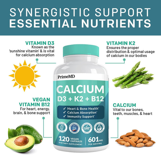 4-in-1 Calcium Supplements with Vitamin D3 K2 for Heart, Bone & Health - Gluten-Free, Vegan (120 ct)