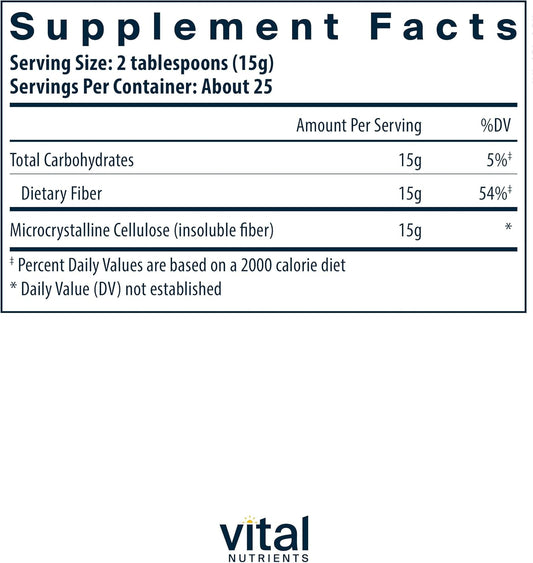 375g Cellulose Insoluble Fiber Powder Capsules for Healthy Bowel Function | Non-GMO Fiber Supplement | Gluten, Dairy, Soy Free