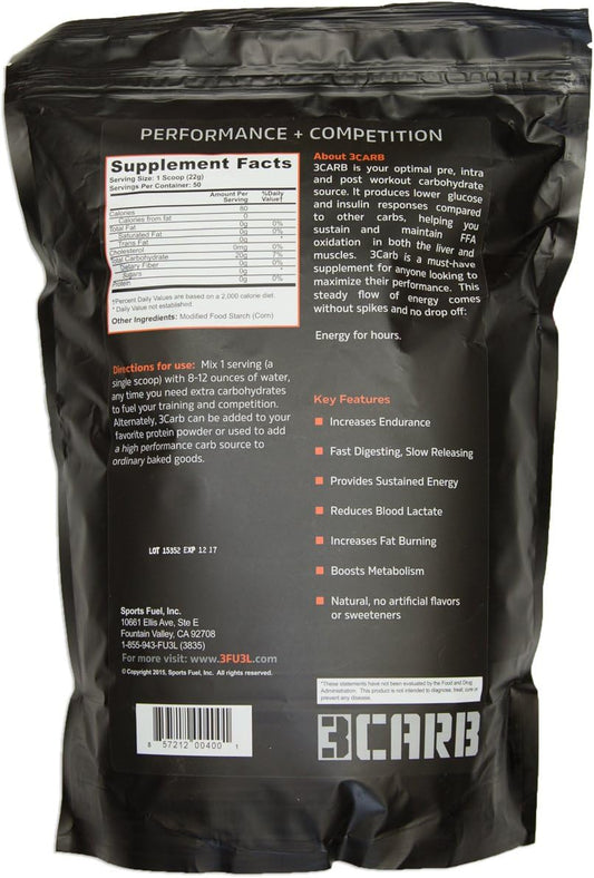 3FU3L 3Carb Carbohydrate Powder - Pre, Intra, Post Performance Supplement - Unflavoured - 2.4 lbs - Energy Boost for Workouts