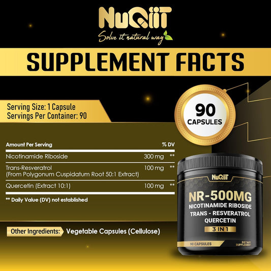 3in1 NAD+ Supplement with NR, Resveratrol, Quercetin - Cellular Energy & Repair - Healthy Aging & Vitality - 90 Count