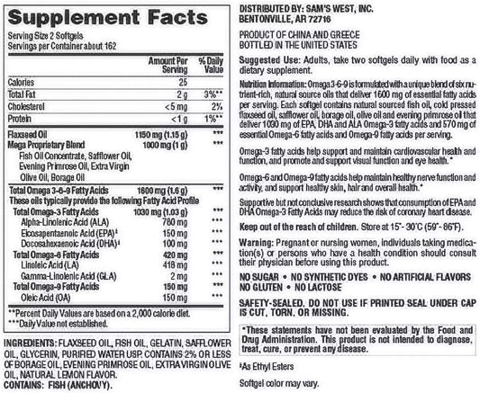 325 Count Members Mark Omega 3-6-9 Dietary Supplement - High Quality Essential Fatty Acids for Health