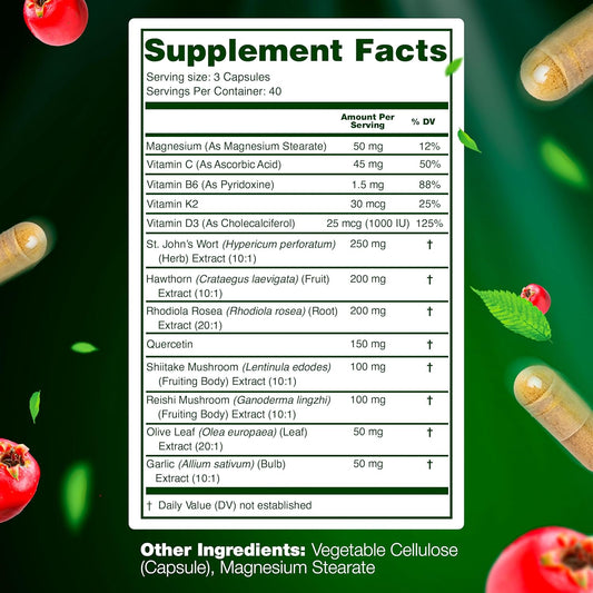 Organic Hawthorn Berry Capsules with St Johns Wort, Rhodiola Rosea, and Vitamin C - Immune Support Supplement with Shiitake, Reishi Mushroom, and QuercetinVendor:LetaGreenRegular price $109.78 AUDRegular priceUnit price / per-