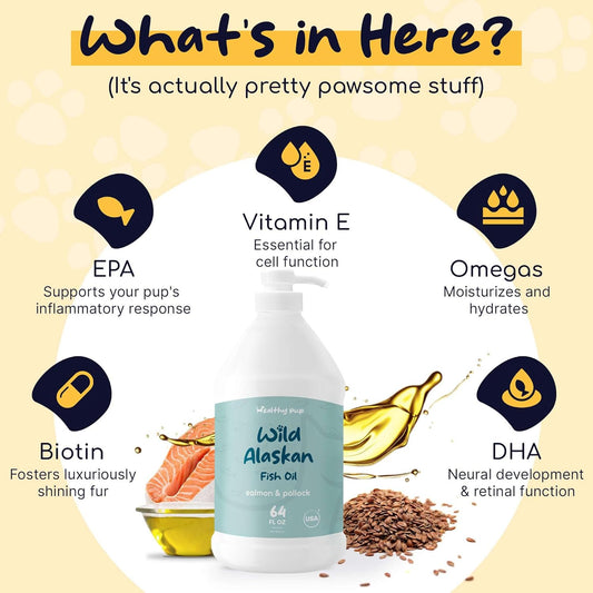64 oz Healthy Pup Wild Alaskan Salmon and Pollock Oil for Dogs - Omega 3, EPA, DHA - Skin and Coat Supplement - USA Made