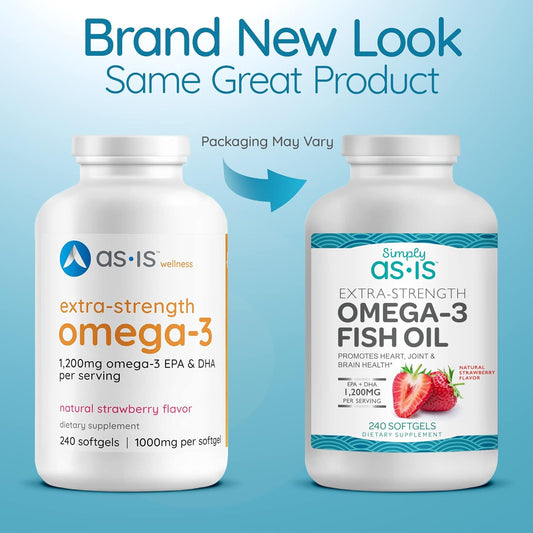 240 Count AS-IS Simply Extra-Strength Omega-3 Fish Oil Softgels with 1200mg EPA + DHA for Heart, Joint & Brain Health