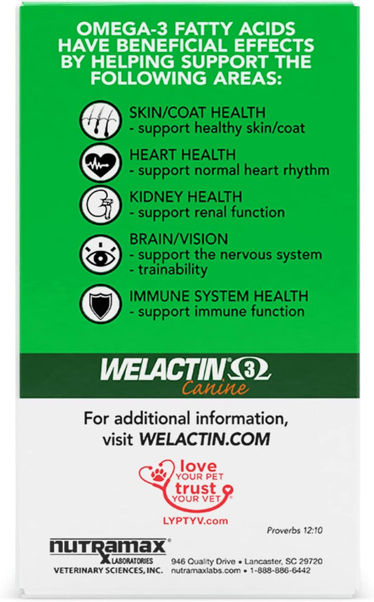 3 Pack Nutramax Welactin Omega-3 Fish Oil Skin & Coat Health Liquid Supplement for Dogs - 360 Softgels