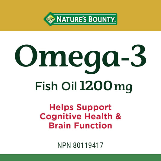 High Strength Nature's Bounty Omega-3 Fish Oil Softgels, 1200mg, 200 Count Bottle