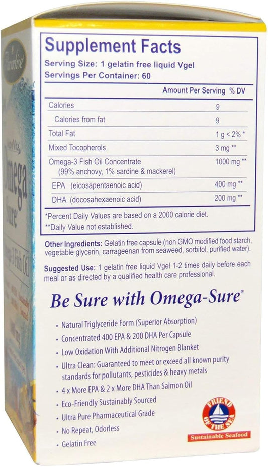 Premium Paradise Herbs Omega-3 Concentrate, DHA, EPA, Vegan, Non-GMO, Gluten-Free Softgels - 60 Count