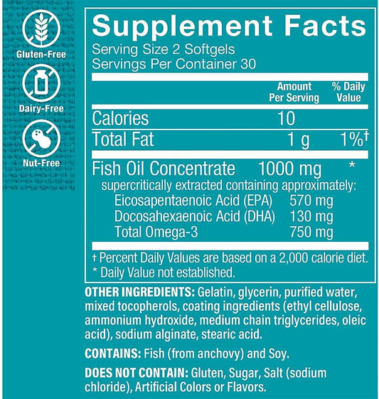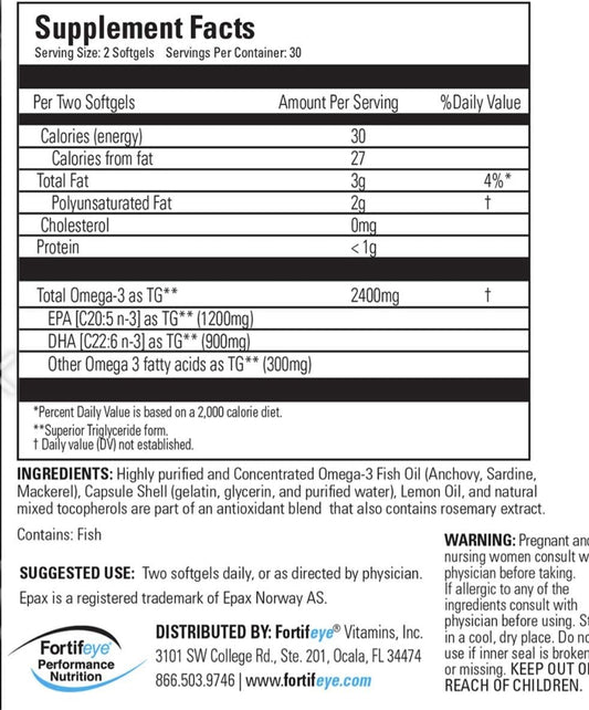 Fortifeye Super Omega-3 Sport Fish Oil Capsules - Lemon Flavor, 1200 EPA / 900 DHA Per Serv, 60 Day Supply