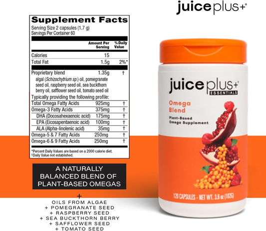 Vegan Omega Blend Capsules with DHA, ALA & EPA - No Fish, No Aftertaste - Algae & Seed Omega 3, 5, 6, 7 & 9 Fatty Acids for Brain & Vision - 120 ct.