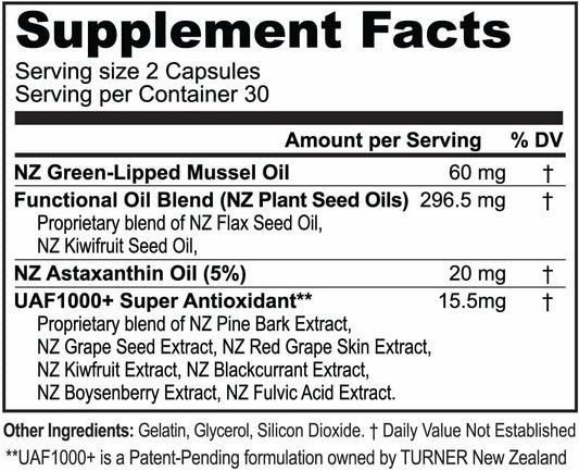 TURNER New Zealand Green Lipped Mussel Oil with UAF1000+ Antioxidant, High Potency Joint Support, 240 Softgels