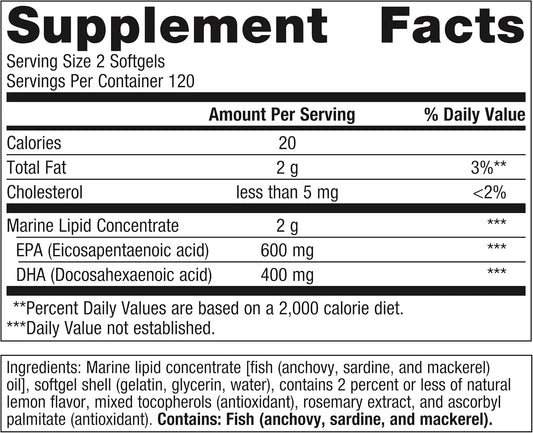 High-Potency Omega Fish Oil Supplement with EPA & DHA, 90 Soft Gels, Promotes Brain, Heart, Skin, Eye, Joint Health - Lemon Flavor