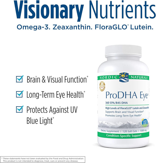 Nordic Naturals ProDHA Eye Soft Gels - Fish Oil with EPA, DHA, Lutein, Zeaxanthin for Neurological Function and Eye Health, 120 Count