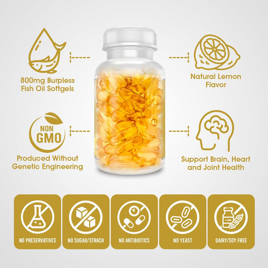 Premium Omega 3 Fish Oil Supplement with 1400mg EPA & DHA - Triple Distilled for Heart, Brain, and Joint Health - 60 Softgels, No Fillers