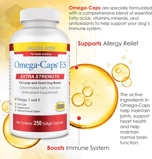 Omega-Caps ES for Large & Giant Dogs - Support Immune System, Joints, Heart, and Brain - 250 Softgel Capsules for Pet Health
