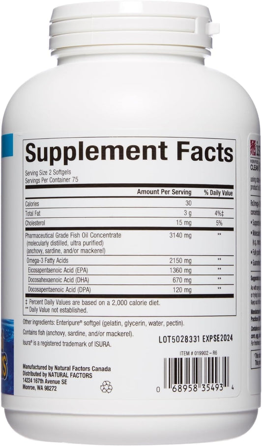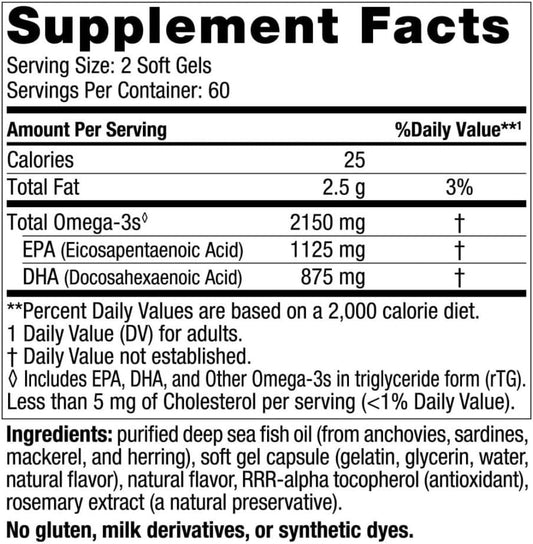 Ultra Strength RxOmega-3 Fish Oil - High Potency Formula, 2,150mg Omega-3 Per Serving, 150 Softgels, No Fishy Aftertaste