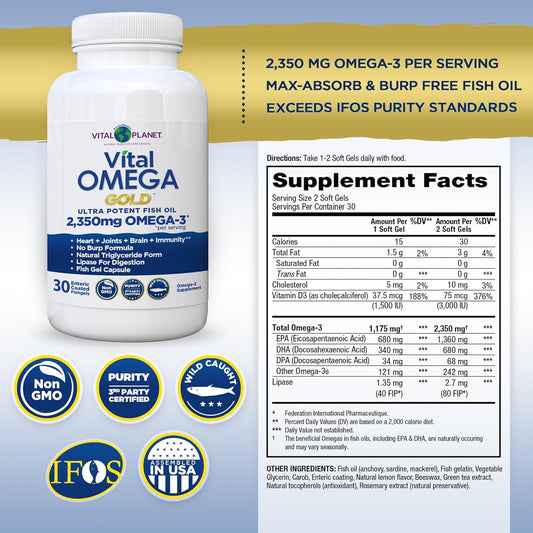 Vital Planet Vital Omega Ultra Potent Fish Oil Supplement 2350mg EPA DHA Brain Heart Health 30 Softgels