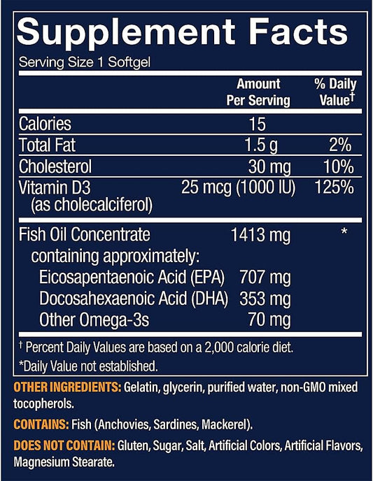 Vthrive Premium Omega-3 Fish Oil with Vitamin D3 - Cardiovascular Health Support - 1,060 EPA/DHA - 120 Softgels