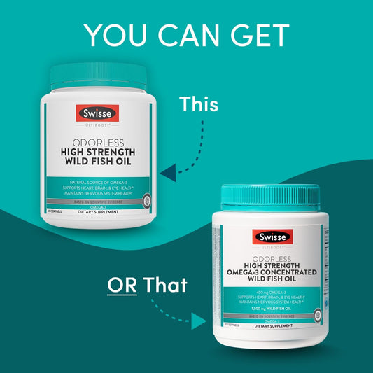 High Strength Swisse Wild Fish Oil Omega 3 Supplement | EPA DHA Fish Oil Softgels | Odorless | Supports Brain, Eye, Heart Health | 1500 mg - 400 Pills