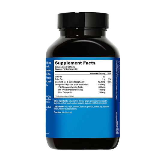 High-Potency Omega-3 Fish Oil Supplement for Heart, Brain, and Immune Support - Mega Concentrated Formula - 60 Softgels