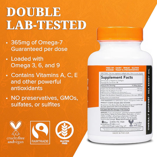 Organic Himalayan Sea Buckthorn Oil Softgels - 90 Day Supply for Healthy Skin, Hair, Nails - Omega-7 Supplement