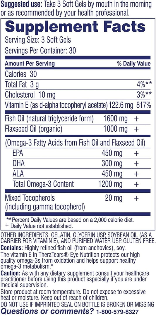 TheraTears Omega 3 Supplement Softgels - 1200mg, 90 Count Bottle - Pack of 1