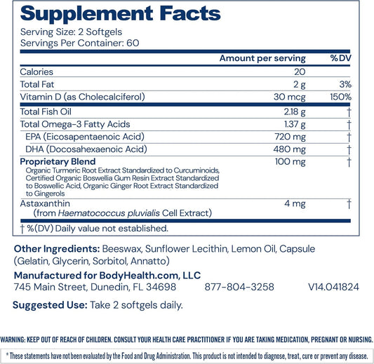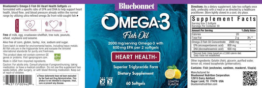 Highly Concentrated Omega-3 Heart Health Supplement - Bluebonnet Nutrition - Wild Caught Triglyceride Form DHA 600mg EPA 800mg - Gluten-Free - 60 Softgel