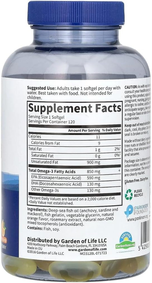 Garden of Life Dr. Formulated Advanced Omega Fish Oil Softgels - Lemon Flavored, 1,290mg EPA, DHA + DPA, Single Source Omega 3 Supplement for Brain & Heart Health, Non-GMO - 180 Count