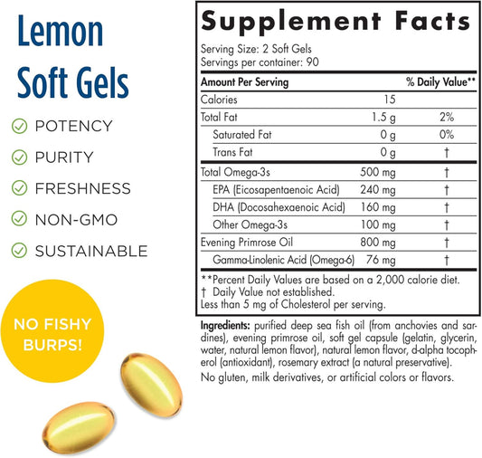 Nordic Naturals Pro Balanced Omega Soft Gels - Lemon Flavor - 180 Count - 500mg Omega-3 + 800mg Evening Primrose Oil - Skin & Hormone Support - Non-GMO - 90 Servings