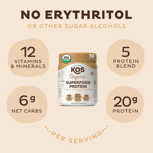 Organic Chocolate Peanut Butter Vegan Protein Powder - Low Carb Pea Blend with Vitamins & Minerals - Keto, Dairy & Soy Free - 10 Servings
