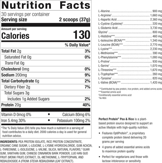Metagenics Perfect Protein Pea & Rice with OptiProtein and BCAAs - Vanilla Flavor - 30 Servings
