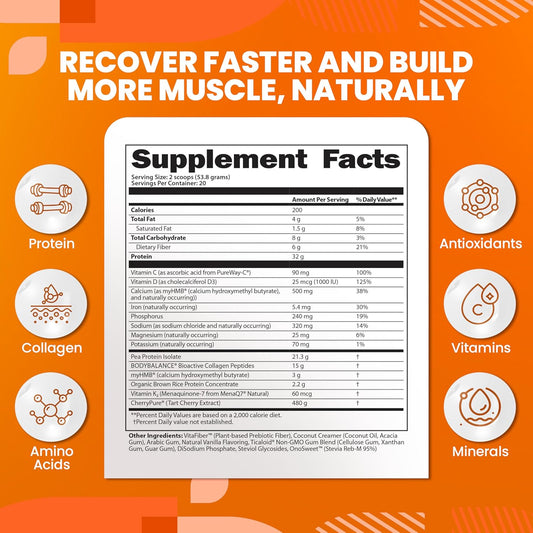Vanilla Cream Protein Shake for Joints & Muscle Recovery with Collagen Peptides, HMB, Tart Cherry Extract, Pea Protein Isolate, and Prebiotic Fiber