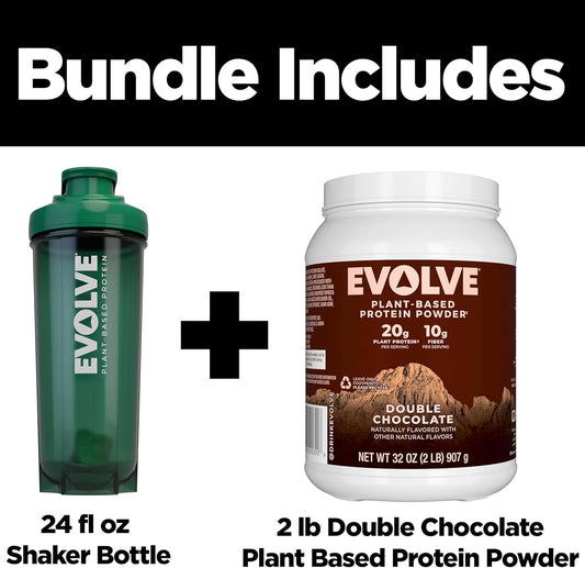 Double Chocolate Evolve Plant Based Protein Powder - 20g Vegan Protein, Dairy Free, Non-GMO, 3g Fiber - 2 lb + BPA-free Blender Bottle