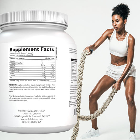 Plant-Based Vanilla Protein Powder - 454g with 21g of Vegan Protein per Serving - Low Sugar, Daily Defense Protein Powder for Women & Men