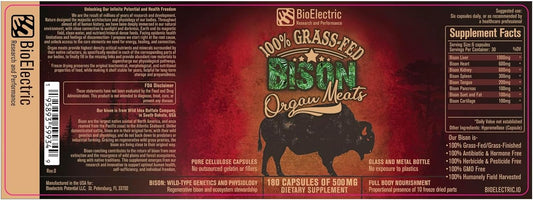 100% Grass-Fed Freeze-Dried Bison Organ Supplement for BioElectric Research and Performance - Single Source, Wild-Type Native Alternative to Beef