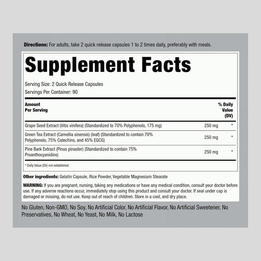 180 Capsules Piping Rock Grape Seed, Green Tea & Pine Bark Complex - Standardized Extract, Non GMO, Gluten Free Supplement