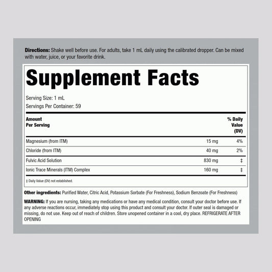 2 fl oz Liquid Fulvic Acid Drops with Trace Minerals - Ionic Supplement for Vegetarians, Non-GMO & Gluten Free