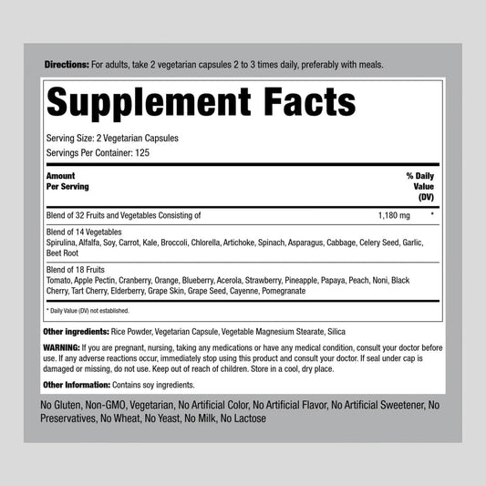 250 Capsules Piping Rock Fruits & Veggies Superfood Supplement - Vegetarian, Non-GMO, Gluten-Free