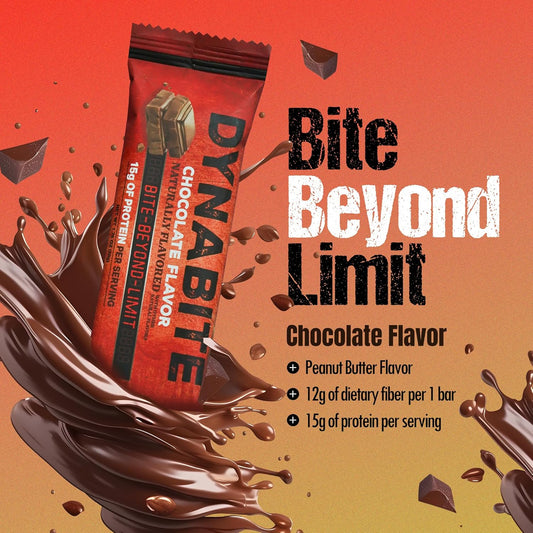 10 Count DYNABITE Premium Energy Bars in Chocolate - Low Carb, Plant-Based, Gluten-Free, Zero Sugar High Protein Snacks