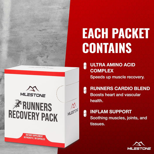 Running Recovery Pack - Boost Marathon Training Nutrition, Recover Faster & Enhance Energy Levels with Endurance Supplement - 60 Packets & 180 Capsules