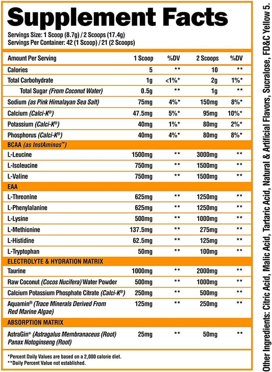 Superhuman Intra Workout Powder with Amino Acids, BCAA, Electrolytes & Hydration Mix - Tropical Pineapple Juice Flavor (42 Servings)