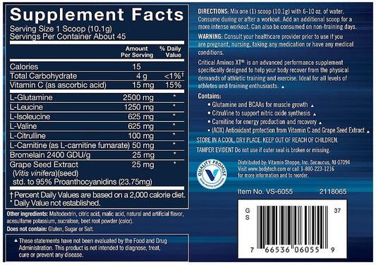 BodyTech Critical Aminos XT Powder - Strawberry Lemonade Flavor - Supports Muscle Recovery, Endurance, Performance - 16 oz, 45 Servings