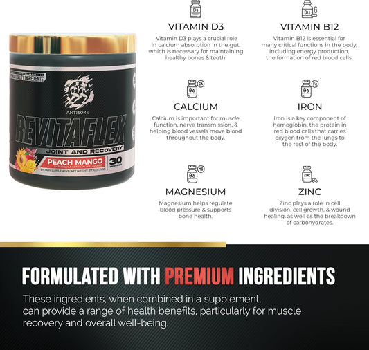 AntiSore Revitaflex: Premium Joint & Muscle Recovery Supplement - Peach Mango Flavor - Fast-Acting Formula - 30 Servings
