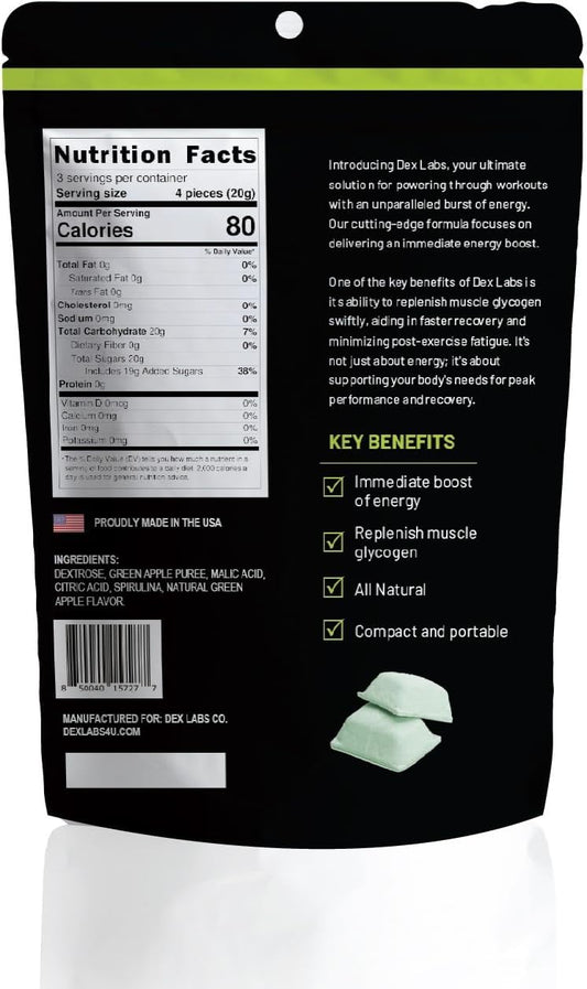Green Apple Flavour Dextrose Bites - Portable Energy Snacks for Workout - Glucose Tablets with Dextrose Powder - Convenient Melts for Running Energy - Pack of 01