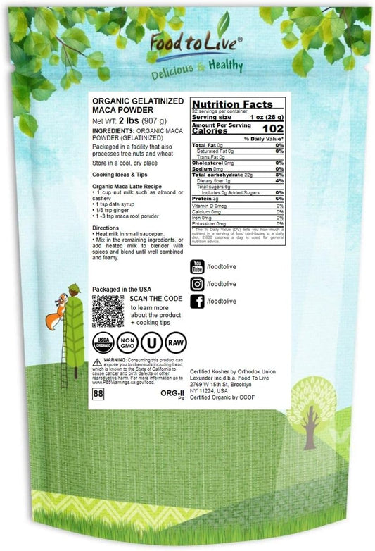2lb Organic Gelatinized Maca Powder - Non-GMO, Kosher, Vegan - Bulk Size