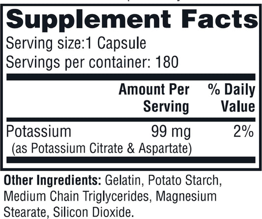 Twinlab Potassium Capsules - 180 Count 99mg Electrolyte Supplement for Muscle, Heart, and Tissue Health